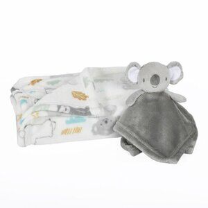 Adorable, new with tags 2-Piece Security Blanket set for Baby!! Grey Koala lovey with white print full blanket.