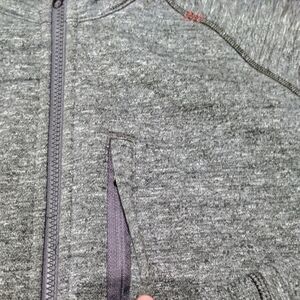 Nice thick sweater from Lululemon with black fleece lining on the inside. It has a full zip up, and three zippered pockets on the inside with a sizable hood. It's in good condition, there are signs of wear on the wrists with some fraying and thinning of material, but otherwise lots of wear left!