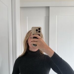 Grey Merino Wool Turtle Neck Long Sleeve Top