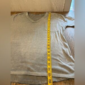 Soft light grey knit sweater with a relaxed fit, long sleeves, and V-neckline. Features a small chest pocket and subtle shimmer throughout. Made in Italy. Fabric blend: cotton and viscose. No visible brand. One size – please refer to measurements. Like new condition.