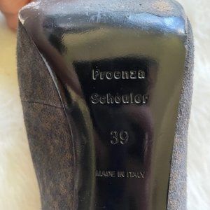 Genuine Proenza Schouler Boots. Real Suede, hidden platform and a 4.5 inch heel. Very slight wear and minimal scuffs on them, and some scuff on the bottoms. Overall great condition! They are a EU size 39, equivalent to a size 8-9 US. however they are very narrow, I do NOT believe they fit a true size nine. Bottom of the shoe is 3 inches wide, and there is no give to these.
