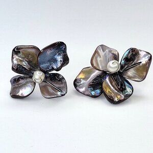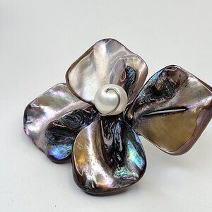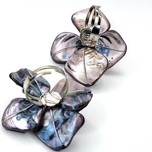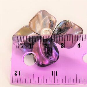 Grey Purple Shell Ring with Genuine Pearl Bead Asymmetric Flower Adjustable Ring