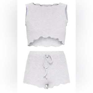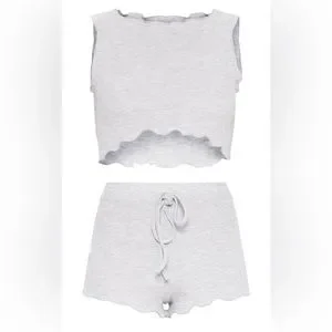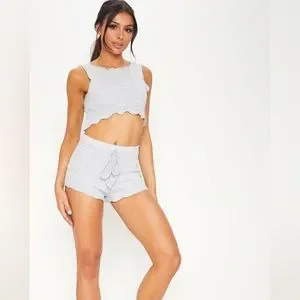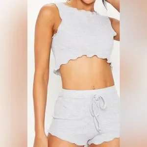 Grey Ribbed Frill Edge Short PJ Set🩶