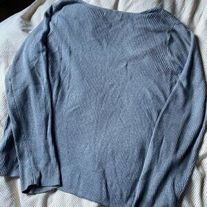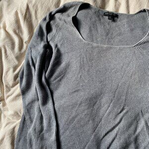 Beautiful grey square neck ribbed sweater. Banana Republic brand. Size XL. Excellent used condition. Cotton blend. 3/4 sleeves. Very flattering. Sad to part with it but not my current size.