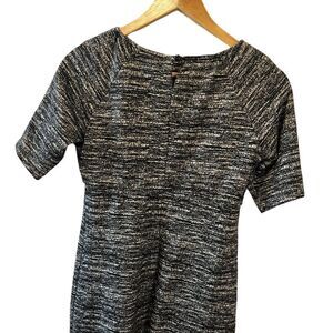 Grey Salt & Pepper Short Sleeve Tapered Waist Boat Neck Stretch Dress M