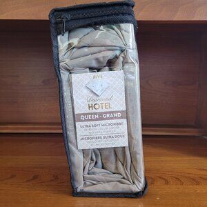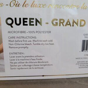 "Five Diamond Hotel" microfibre Queen sheet set in grey. Deep pocket, fits extra-deep mattress up to 16" / 40 cm.