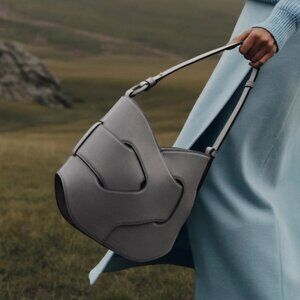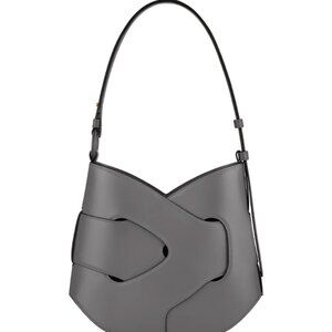 Grey Smooth Leather Hobo Bag with Adjustable Shoulder Strap and Top Zipper, NWOT