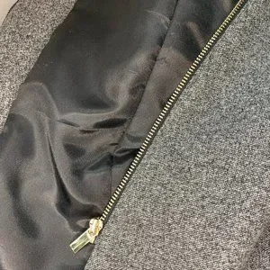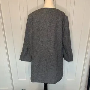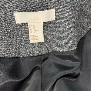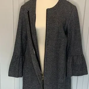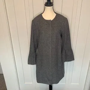 Grey, fine tweed-like coat for spring and fall, From H&M, size US10. The fabric is super soft and shows no signs of wear or pilling, it's in excellent condition. Bell sleeves, and functional hidden pockets. Gold-tone zipper that slides smoothly. Length is approx 36" from top of shoulder. Actual colour is more like the close-up pictures.