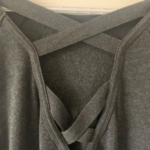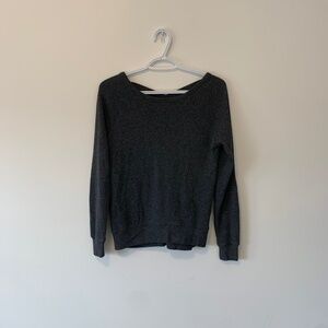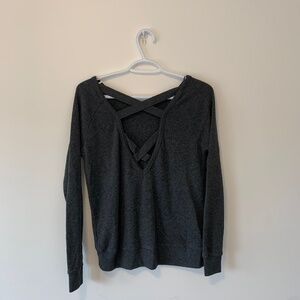 Charcoal grey cozy sweater, cross back detailing. Worn maybe once or twice- don’t wear because it’s just a bit too small for me. Excellent condition. Originally bought at winners, brand on the tag is “Live Love Dream”
