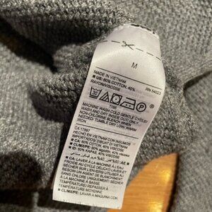 This is a gray, textured sweater top tunic for women from Old Navy. It has a V-neckline, long sleeves, and is a regular size medium. The style is a tunic, making it a longer length.
