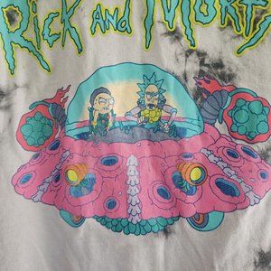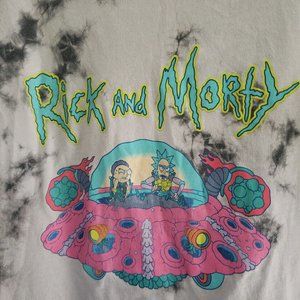 This grey tye dye "Rick and Morty" Adult Swim t-shirt is a must-have for fans of the hit animated series. Made of regular fit, it's comfortable to wear and perfect for any casual occasion. The t-shirt features a starry theme that adds a touch of cosmic charm to your wardrobe. The shirt is size medium and suitable for men. It's made by Adult Swim, a brand synonymous with quality and style. Get ready to show off your love for Rick and Morty with this amazing t-shirt.