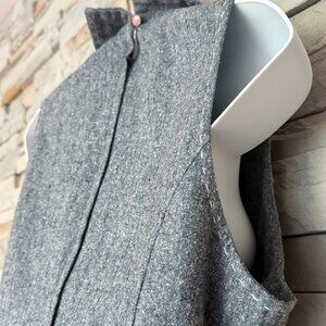 Grey Wool Midi Dress w/ White Lace-up Front Detail & a Back Slit Below the Knee