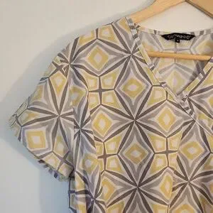 Grey Yellow Geometric Pattern Scrub Top