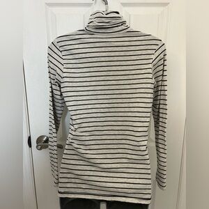 Classic basic, great for any closet, this is a black and grey stripped turtle neck shirt in a lovely soft and stretchy cotton blend. Excellent condition, great under a blazer, vest or on its own. 17” pit to pit,