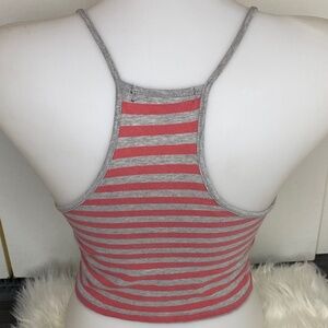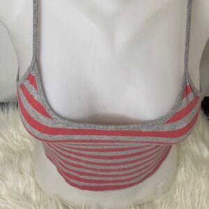 Grey and Light Pink Striped Crop top With Spaghetti Straps Size small. Has zero flaws whatsoever. I only categorized the condition as “good” as it’s been worn and washed a handful of times so it has the slightest bit of normal colour fade. No rips stains tears or anything. Super cute very versatile top! 🥰