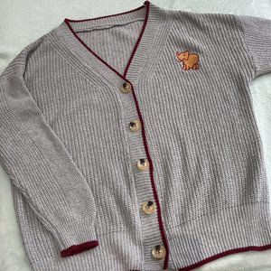 Grey and red knit cardigan with elephant mark