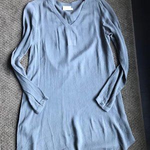Long sleeved grey tunic style top. Crepe light weight fabric, sits about mid-thigh. Placket front.