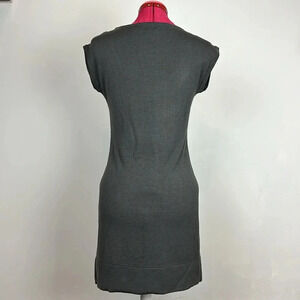 Get ready to party! This dress shimmers as you move while the lower band hugs the thigh area just below your bottom. Neck and arm openings are bound with rib knit. Warm charcoal grey color. 100% acrylic