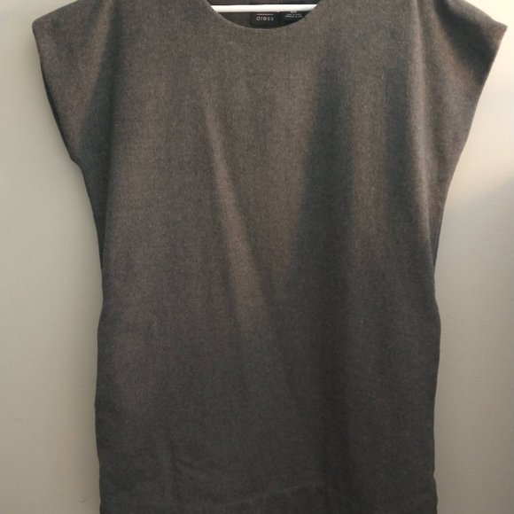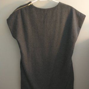 Grey wool-blend tunic dress. Never worn. Beautifully soft. Can wear it belted or not. Has pockets. Gold zipper detail on one shoulder. Size M.