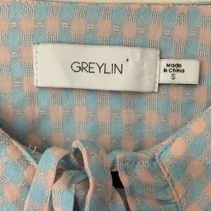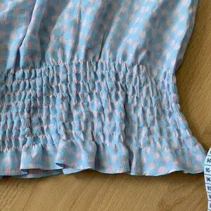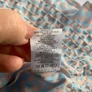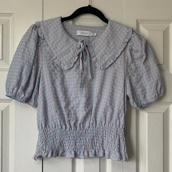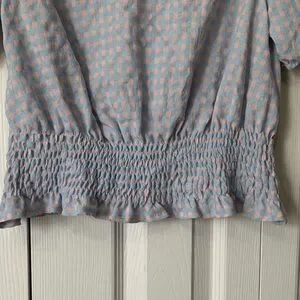 Greylin Blue and Pink Gingham Checkered Smocked Blouse Top Size S
