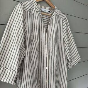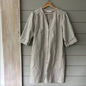 Greylin Striped Linen Blend Button-Front Dress – Size L