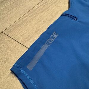 Scrub top and bottom set. Used and in good condition. No holes or tears. Some of the logos have faded from use, but overall in good condition. Crotch seam is a little stretched, but no holes.