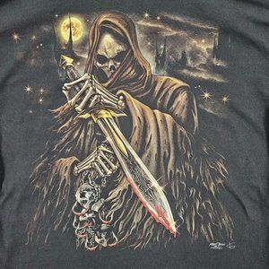 Grim Reaper Black T-Shirt Skulls Skeletons Death Horror Men's Size L Short Sleeve
