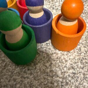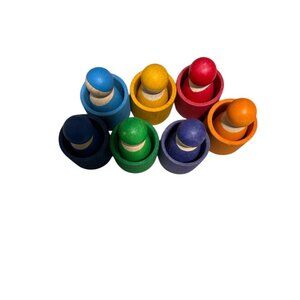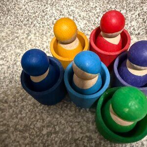 -Seven hand-painted peg dolls — perfect for color sorting, stacking, or creative storytelling.