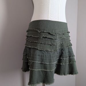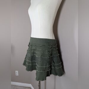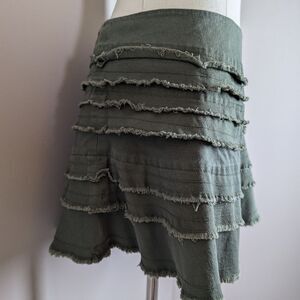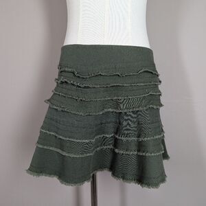 Groggy Y2K Mini Skirt Olive Green Ruffle Hem Raw Edge Small