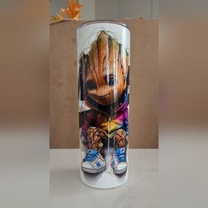 Vibrant Groot with the workds Nike Tumbler print featuring a charming character in a rainbow hoodie. Perfect for adding a splash of color to your home decor.
