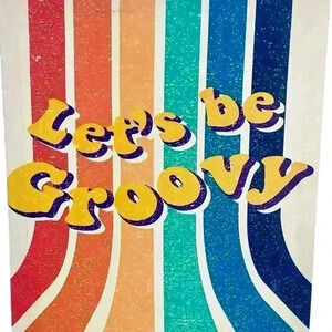 Add some 70s-inspired vibes to your space with this groovy “Let’s Be Groovy” rainbow canvas print!