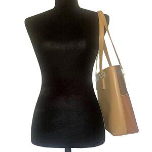 ✿₊⊹groovy vintage? unbranded retro vegan faux leather brown cream tan patchwork square panel shoulder tote purse bag⊹₊✿