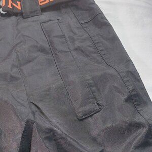 These pants features a Durable Water Resistant (DWR) treated nylon fabric with a waterproof breathable polyurethane laminate.