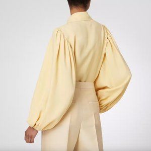 Gucci 2021 Cruise Yellow Crêpe de Chine Balloon Sleeve Blouse