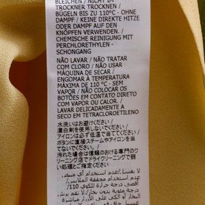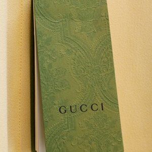 A light yellow blouse from Gucci’s 2021 Cruise Collection crafted from silky crêpe de chine fabric featuring a pointed shirt collar, long sleeves, gathered sleeve cuffs, a round hem, and a concealed button-down front with gold-tone GG button at the neckline.
