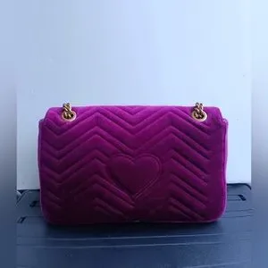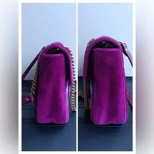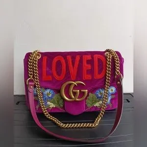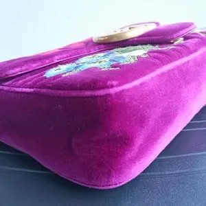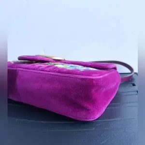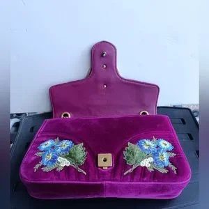 This velvet Gucci embroidered bag with signature GG hardware is wearable art, and it's the perfect showpiece to add to any look. Purple velvet