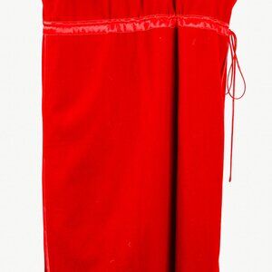 This dress from Gucci's 2019 Autumn and Winter runway collection is crafted in a red wool, and is trimmed in a tonal silk-blend satin. It features batwing sleeves, a cowl neck, buttoned closures on the right shoulder, a drawstring waist, side seam pockets, a knee-length skirt, an invisible back zip closure, and comes with a detachable sleeveless slip.