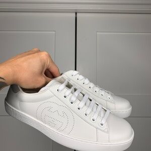 Gucci Ace Interlocking G Logo White Leather Sneakers