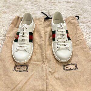 Authentic Gucci Ace Sneakers with Bee, size 5 (unisex) in excellent condition. Worn once, selling due to sizing (too big) Bought brand new. Shoes come with shoe dust bags