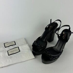 Gucci Allie Knotted Platform Sandals EU 37 US 7 Black Crawford Block High Heel