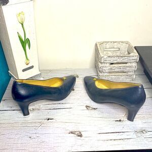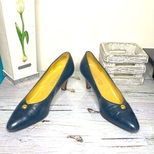 🌷Gucci 🌷Authentic Vintage Navy Blue Gold Gem Heel Leather Pumps From Italy 🇮🇹