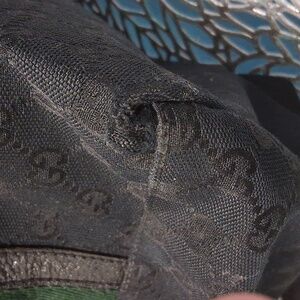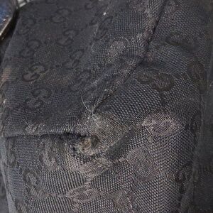 BLack Monogram Canvas Gucci Backpack with large stripe.