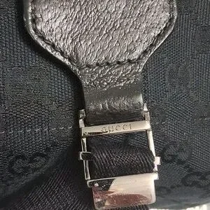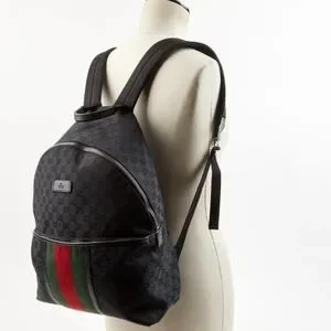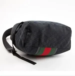 BLack Monogram Canvas Gucci Backpack with large stripe.