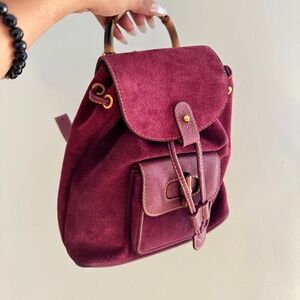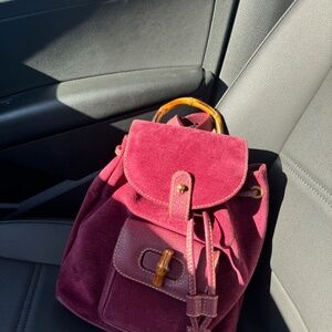 Gucci Bamboo Backpack in purple suede. This vintage piece is perfect for any vintage collectors! Light markings and minor scratches but overall in great condition. For more questions or pictures please do not hesitate to contact me