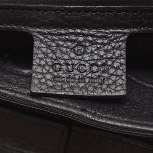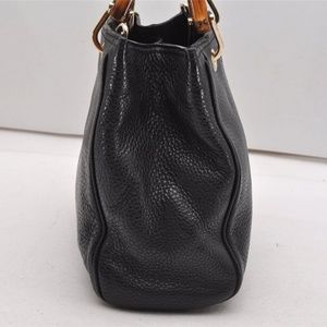 Authentic Gucci Black Leather Bamboo Shopper 2way handbag with gold hardware and crossbody strap. Mini bucket bag style. Bag is in excellent used condition, leather is moisturized and supple, no scratches or damage. Minor scuffs on trim consistent with use. Hardware is gold-tone and all intact, very minor scratching. Gold embossed "Made in Italy by Gucci" logo on front of bag. Bamboo handles are in excellent condition, no scratching or cracks. Removable leather crossbody strap is adjustable, hardware features the Gucci logo, and is in great condition. Interior is lined with a black cotton material without any stains or rips. Interior of bag is divide into two sections, one side features a button-closure pocket with 2 open pockets, other side has a zip-closure pocket. Overall bag is in excellent condition, appears nearly new and very clean inside. Does not include dustbag or original proof of purchase. Dimensions approximately 10"x11"x4", handle drop 4.5", shoulder strap 23"-25" (adjustable).