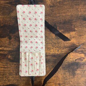 The Gucci luxury cosmetic pouch is a stylish accessory designed to hold three lipsticks. Its exterior is a chic pink color adorned with a stunning floral print, while the interior features a beautiful floral pattern. The pouch is secured with a charming ribbon closure that adds a cute finishing touch.