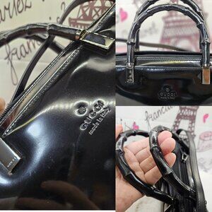 Gucci Black Patent Leather Bamboo Handle 2-Way Bag