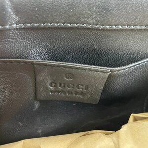 Very good pre-owned condition satin Gucci clutch with snakeskin floral embellishment