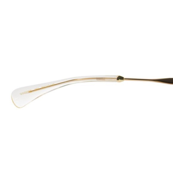 Achieve urban chic effortlessly with these shades - your essential city accessory. Intricate nuances establish these sunglasses as the ultimate summer must-have. This specific pair boasts a square silhouette, with its rims meticulously fashioned from smoked clear acetate overlaying a delicate gold frame. The arms, crafted in lustrous gold-toned metal with clear acetate ear socks, elegantly display Gucci's iconic name at both temples, bestowing the brand's signature essence.