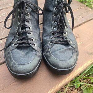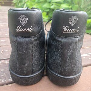 Gucci Brooklyn GG Hightop Mens shoes, slight wear on shoes as seen in pictures. Front leather on shoes is slightly scuffed, left shoe is a bit worse than the right. Leather on back of shoes has slight wear and fading. There are also creases from wear on the shoes as no crease protectors were used. Posting for $250 OBO